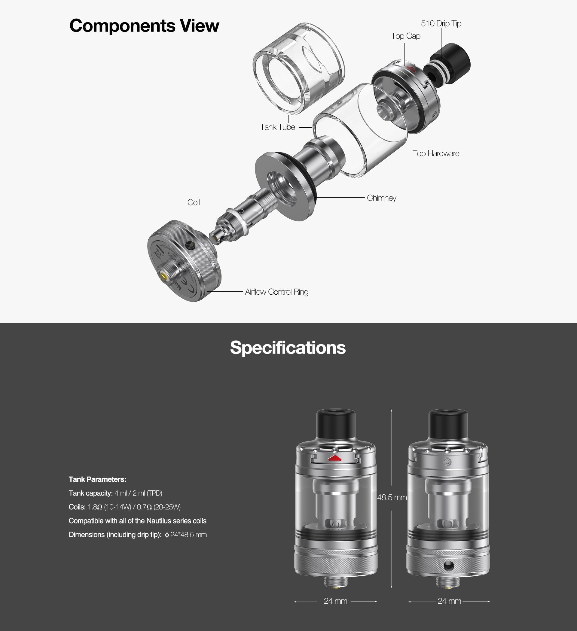 味に優れたAspireの定番クリアロマイザー「Nautilus」の後継バージョンです。